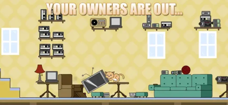 You are a cat. Your owners left you alone. Do as much damage as possible before they get back. Destroy four levels - the house, museum, school, and mall.