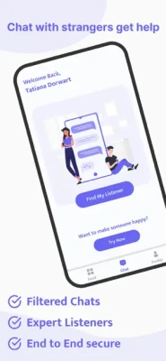 This app is not with the main motive to match you and talk to strangers but provides additional features such as venting, matching with listeners, signing up as a listener, and many more. Our app is a safe safe community as on this app we have made a filter to not allow any spam or inappropriate language.