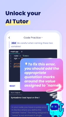 · Engaging Conversations, Easy Learning Learn coding through interactive and engaging conversations. Complex concepts are broken down into bite-sized pieces, making it accessible and enjoyable for everyone. · Code Anywhere, Anytime Say goodbye to rigid schedules. With Codebay, you can code on your smartphone wherever you are. Learning has never been this flexible and accessible. · Mastery through Practice It's not just about knowing; it's about doing. Codebay emphasizes practical coding exercises, so you can apply what you've learned and build confidence. · Solidify with Flashcards Reinforce your understanding with our flashcards. Collect and review key concepts to ensure they stick with you as you progress.