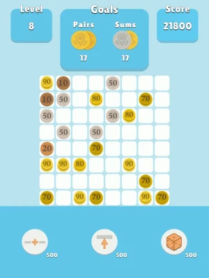 Fun puzzle game. Connect pairs and sums of 1$ to clear the board