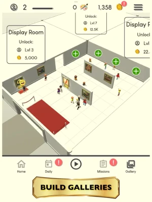 ▶ CUSTOMIZE galleries by building and improving art exhibits for each completed picture.