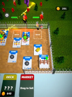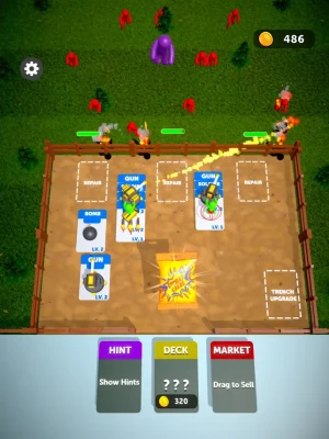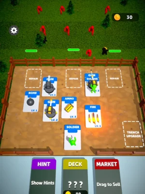 Open packs. Merge and combine cards to upgrade your army. Use your repair and upgrade trench cards to strengthen your defenses. Kill your enemies to earn money. Evolve your army.