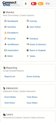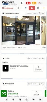 Complete Control View Recent Activity GeoView System Mapping Arm/Disarm Security Areas View Zones & Sensors with Bypass Capability View & Control Access Doors & Outputs View Live Video View & Control Thermostats View & Control Lighting View & Control Automation Tasks Lockdown Capability Mobile Badge