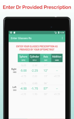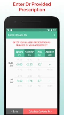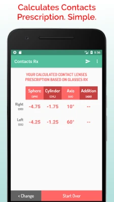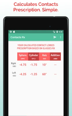 Contact Lens Prescription Calculator is a smart calculator that converts your eyeglasses prescription to your contact lenses prescription. Looking to purchase your contacts online? Get your contact lenses prescription using this app and be on your way!