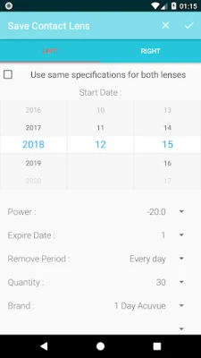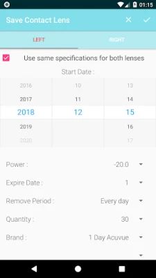 -Remind your contact lens informations. -Get notification depend on your contact lens stock or selected period of your usage. -Track contact lens time with great visuals.