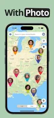 ✴Features✴ - Differents marker types: standard or text - Search for a contact name - Quick action for a contact: - start a navigation - open the contact - see notes - Compatible with large phonebook by clustering marker.