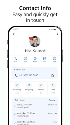 Contacts : Easy Phone Dialer app is helps you quickly manage your contact list. Contacts and dialer only takes a few seconds to get in touch with your contacts. Phone Book available with latest smart call management features.