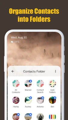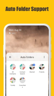 Key features: - You can put contacts and subfolders in a folder. - Support for auto-folders (predefined, non-editable folders). - Add created folders to the home screen as various widgets or shortcuts.