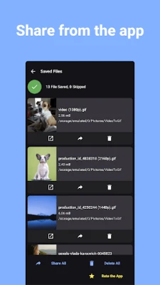 Customize the resolution of your GIFs to suit your needs. Whether you want high-quality GIFs for social media or smaller files for quick sharing, our app gives you full control over the output resolution.