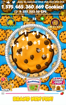 - You have 2 new powerful boosts at your fingertips: The Lucky Spin with a free daily spin, and the Time Machine which speeds up time AND your cookie production!