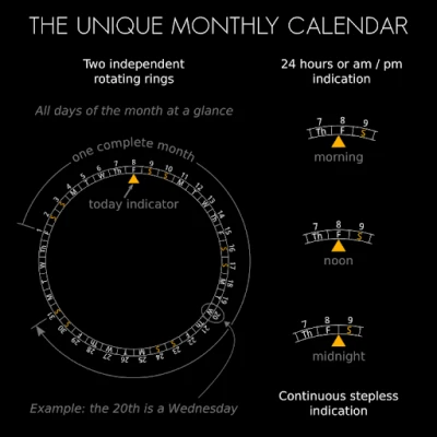 • Continuous indication on date field (serves as an AM/PM indicator)