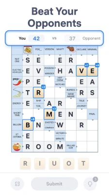 - Confirm your choices by clicking the Submit button once you’ve placed all your letters. The opponents are virtual so you don't waste precious time waiting for your opponent's next move.