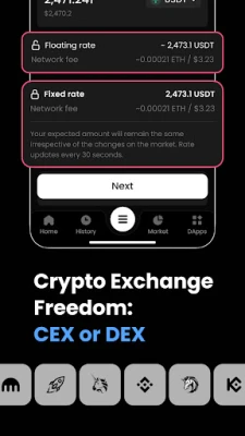 Effortlessly create and manage your cryptocurrency portfolio. 🗂️ Securely store your Bitcoin and other coins in one place, conduct seamless transactions, and trade among an extensive selection of assets. Plus, choose between fixed or floating exchange rates on centralized exchanges (CEX) or enjoy a decentralized exchange (DEX) experience!