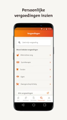 • Bekijk in de app hoe je verzekerd bent voor de meest bekeken vergoedingen. Bijvoorbeeld voor fysio of alternatieve zorg