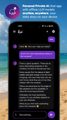 D.AI is designed for users who value privacy, security, and total control over their AI assistant. Whether you need an AI chatbot for creative writing, professional work, learning, productivity, or just as a personal AI for everyday assistance, D.AI provides a fast and reliable solution without relying on cloud services.