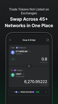- Cryptocurrency Transactions: Easily send and receive cryptocurrencies, and securely swap over 3,000 coins and tokens quickly and safely.