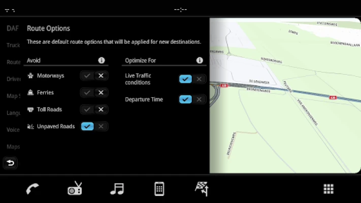 Truck navigation to be used with DAF IVI Luxury Plus infotainment system