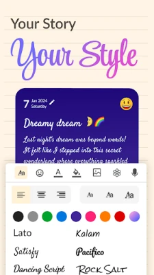 Styling & Customisation: With this diary app, you can customise every note you write. You can choose a custom font that you want to write every day. You can even choose a different colour for each note to match your mood.