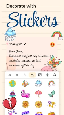 Express yourself with emojis: My Personal Diary App offers you a large database of beautiful icons for your personalised activities. Choose emojis to express yourself freely and reflect your mood.