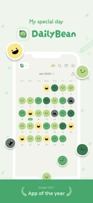 Take a look at how you feel during a month with five mood beans. If you click on the bean, you can check the record you left that day right away.