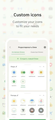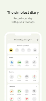 Let's choose your mood for the day and summarize the day with colorful icons. You can add a picture and a line of notes.