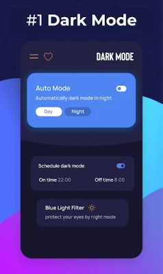 Use Dark Mode - Night Screen and enjoy a beautiful user interface. The dark screen will reduce the negative effect of your device on your eyes.