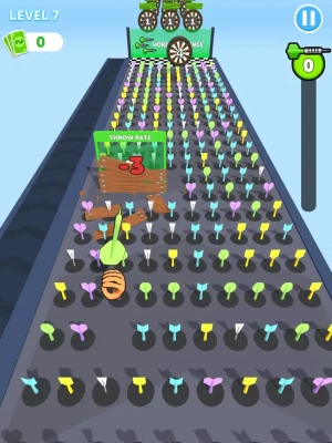 A mobile game where you collect darts, throw darts at boards, and conquer challenging gates. Aim, toss, and become the Dart Dash champion!