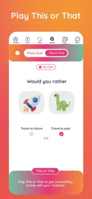 Play fun games like This or That and Photo Duel to find out how compatible are you with your match and gain insights on how to improve your dating profile. Will it be burgers or sushi for your first date? Let the games begin!