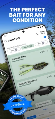 Unlike many other fishing apps, Deep Dive does not rely on other anglers reporting what is working or where they are catching fish. The Deep Dive engine sorts through over a million possible input combinations to give you a proven pattern that has caught bass, but only when the lake and weather conditions are right for that specific pattern.