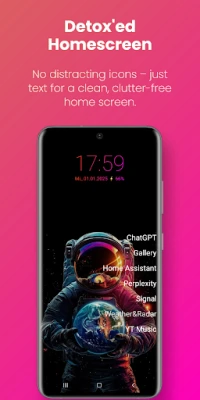 Detox Launcher is a minimalist Android home screen replacement designed to keep you focused on what matters. By removing icons and reducing distractions, it helps lower screen time and boost productivity. Customize colors and text for a look that suits you, while Swipe Gestures let you quickly launch favorite apps. Tap the date for your calendar or the clock for alarms, and enjoy a clutter-free interface. Say goodbye to endless notifications, hello to mindful usage with Detox Launcher.