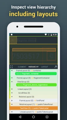 A powerful debugging app for Android. Developer Assistant makes debugging native Android apps as simple as debugging web pages using Chrome’s Developer Tools. It allows you to inspect the View hierarchy, verify Layout, Style, preview Translations and more. Everything can be done directly from the mobile device. Works for most Android apps.