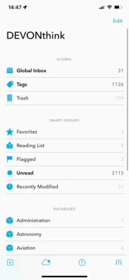 DEVONthink To Go lets you take your important documents with you on your iPad or iPhone. Browse PDFs, notes, images, bookmarks, and just about any file type, neatly organized into databases and groups. View many types of them without opening them in another app.