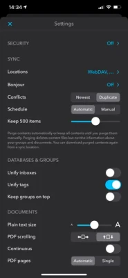 DEVONthink To Go is best used with DEVONthink for Mac and on multiple devices. Synchronize your databases securely and privately over the local network or through a cloud service of your choice. You decide what data is synced, when, and where. Strong encryption makes sure that your data belongs to you, not to your service provider or us.