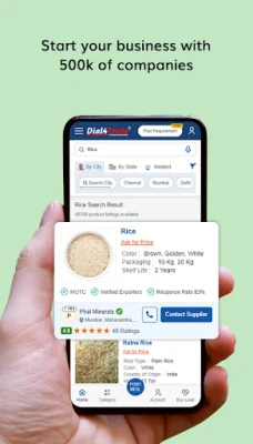 With the Dia4Trade App, Buyers and Manufacturers / Suppliers / Wholesalers can connect with each other to fulfill their business requirements from India and worldwide on a single common platform. This app gives you access to one of the leading B2B marketplace where Companies can buy / sell anything, anytime, anyplace, anywhere directly.