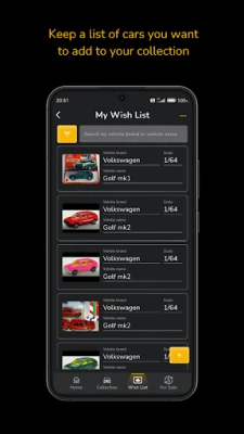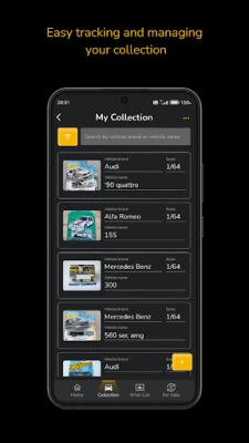 • Wishlist: Keep a list of cars you want to add to your collection.