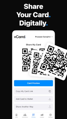 Utilize the QR card feature for seamless exchange through scannable QR codes.