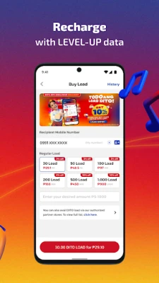 • Earn DITO points when you buy load, buy promos, or update your DITO Rewards profile.
