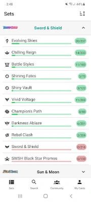 Delve into a vast collection of English cards, including rare variants like reverse holos and first editions. Access the entire database and collection tools even without an internet connection.