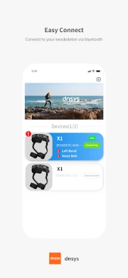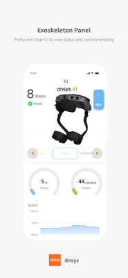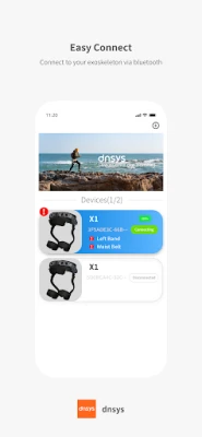 Dnsys is the exclusive application designed for controlling Dnsys's smart exoskeleton devices. It supports easy connection to the exoskeleton via Bluetooth, allowing users to view the status of the exoskeleton and set parameters. With a variety of unique interaction modes, Dnsys helps you see farther horizons and experience the joy of technology-enhanced exercise.