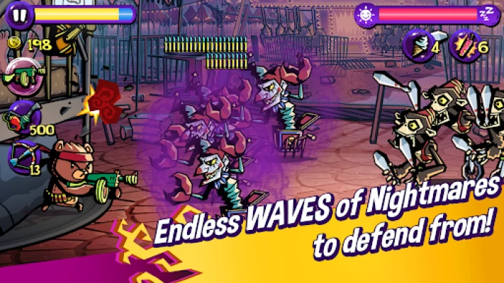 Play as a brave, gun-slinging toy bear and defend Robin from endless waves of scary and sinister creatures called the ‘Nightmares’ that wait silently in the dead of the night, only to attack as soon as she falls asleep.