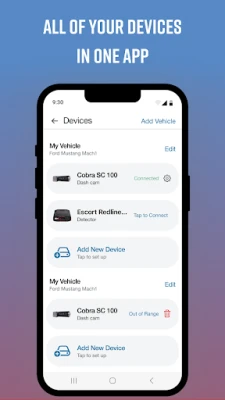 A streamlined onboarding process lets you quickly connect your Dash Cam and configure it as part of your dashboard. You can "add" a virtual vehicle to your account, then add compatible* Cobra and Escort branded devices to your vehicle.