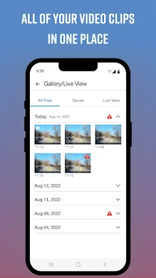 View recordings stored on your Dash Camera SD card; recordings are conveniently sorted by timeline which highlights events of importance; such as possible collisions or impact. Select files to download to your phone; trim video clips and share with your contacts using your favorite communications app.