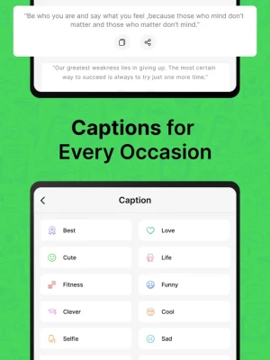 Quickly copy captions, hashtags, stylish fonts, and emoji texts with a single tap and share them across multiple platforms like WhatsApp, Instagram, Facebook, Twitter, and more!