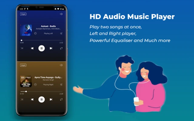 Free to Get this Perfect Duo Audio Player. Listen different songs on Right & Left Earphones or Use like Pro Music Player.