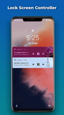 ✔️ Notification status support - For both the players: title and artist, play/pause, album art, skip forward and stop CONTROLS in notification status on lock screen also.