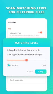 How it works : It's very easy to use. Just click on scan and the app will scan all images (even hidden files & cache files). The app will display sets of all similar and duplicate photos. There are 2 categories of sets : - Similar images : They are not exactly same but 80% similar photos. - Duplicate : They are 100% same in all prospective.