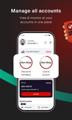 A one-stop shop where you can manage multiple accounts, recharge, pay your bills, subscribe to add-ons, renew your emirates ID registration, avail exclusive online offers and much more with 24/7 live online chat support.