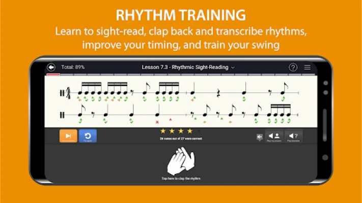 RHYTHM TRAINING - Tap! tap! tap! Sight-read, dictate and tap back rhythms - including swing rhythms! Get instant feedback on your performance