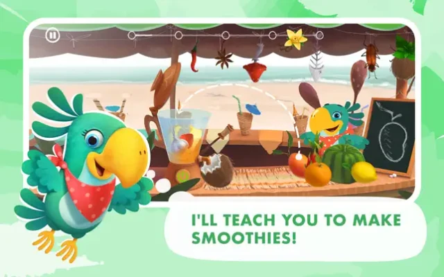 The mischievous parrot has an orchard and loves to experiment in the kitchen. He also loves pranks, so he is preparing a rally for the elephant. Harvest berries and fruits for a gift cocktail, mix parrot recipes and laugh with the fun bird!