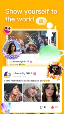 Echo Arabic Random Chat APP offers a special zone for friendship and self-expression. Share your life, your voice, and social moments through voice chats. This feature allows you to present yourself authentically, showcasing your personality through live chats. It's a space where every voice chat makes a difference, helping you to record and share your life's moments and deepen your connections through voice chats.